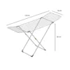 Stable drying rack with extra features. Strong drying lines that reduce drying time. Patented design that locks the wings for easy handling and storage, along with a locking mechanism that secures the legs in the open position for added safety.
