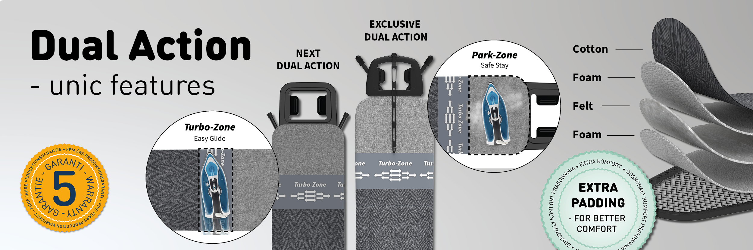 Of course, we also have a range of ironing board covers when your old one needs replacing – or you just would like a new, stylish pattern. Our ironing boards and accessories are always developed to meet the highest quality standards. However, in case of any unforeseen claims, your puchase also comes with a five-year warranty.