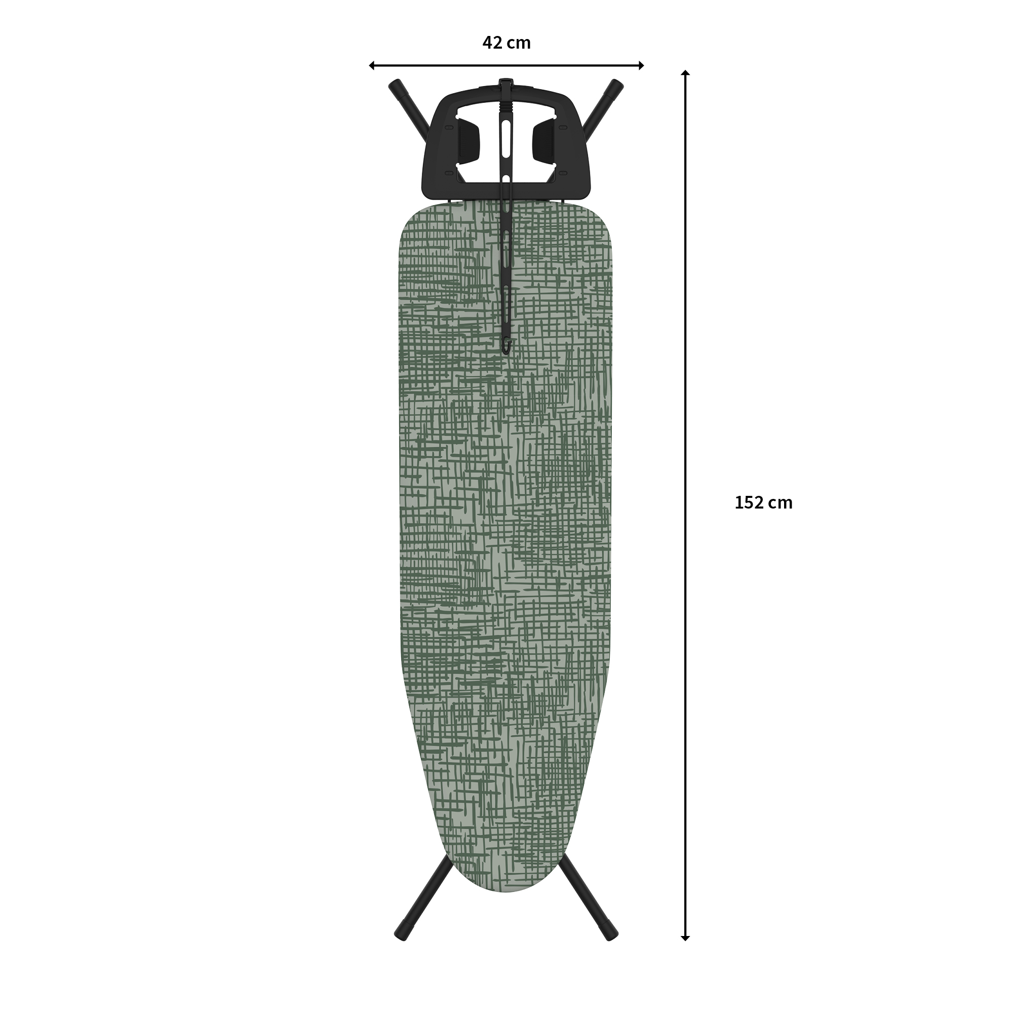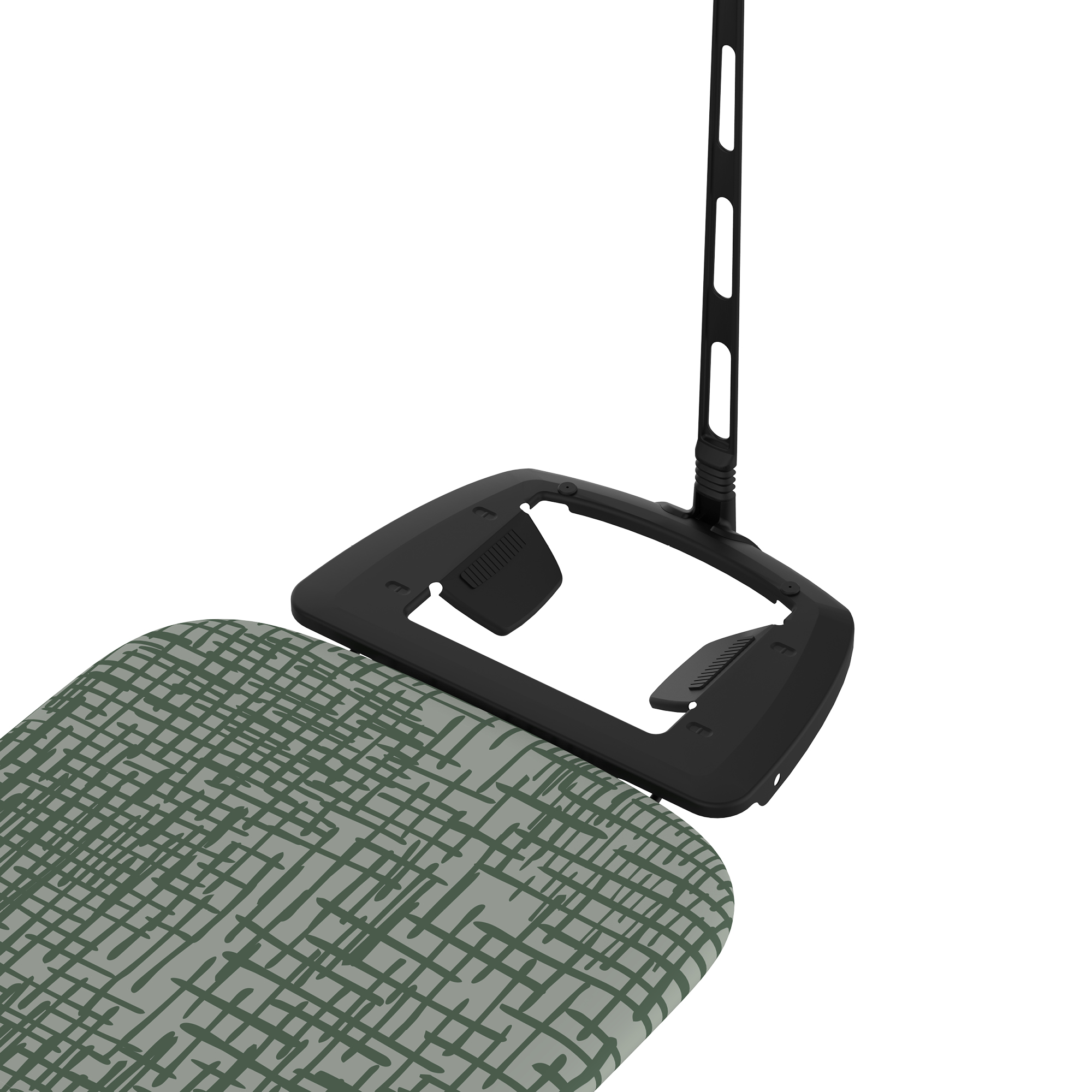 Stable ironing board with practical height adjustment for best working position. Lockable leg support, strong iron rest and a smart cord minder to keep the cord out of the way when you iron.